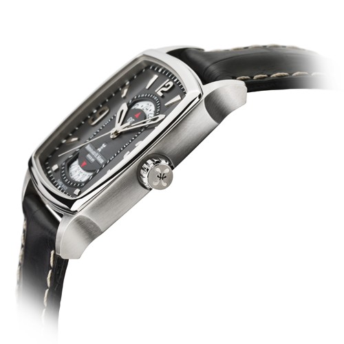 Whether it is elegant or casual look you pursue when you travel, Belleza Magnum will make it happen. With black square face, large numerals, big second time zone and date indicators, this watch is a statement that its wearer is far above ordinary. Adding flair and edge to any look, Belleza Magnum makes it easy doing whatever you feel like. With reliable Swiss movement, sapphire crystal glass with antireflective coating and water resistance of 5 ATM, only one thing is impossible: not following your feelings.
