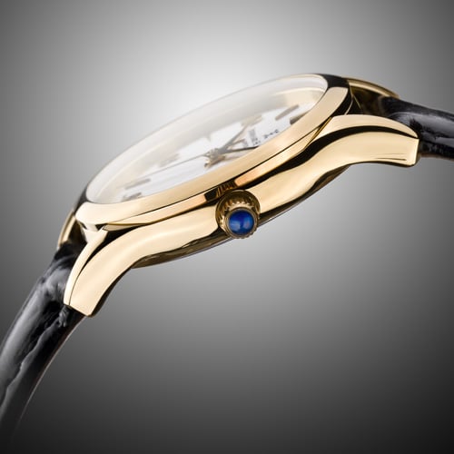 | Case &Crown | Stainless steel with PVD gold-plating and blue cabochon |
